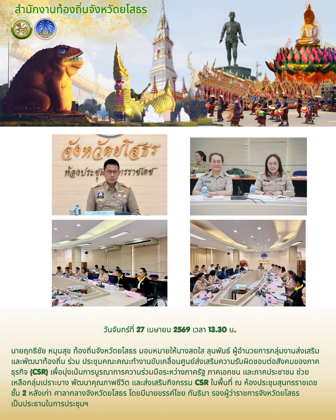 ยโสธร เมือง สถ.จ.ยโสธร ประชุมคณะอนุกรรมการส่งเสริมและพัฒนาคุณภาพชีวิตคนพิการประจำจังหวัดยโสธร ครั้งที่ 3/2569